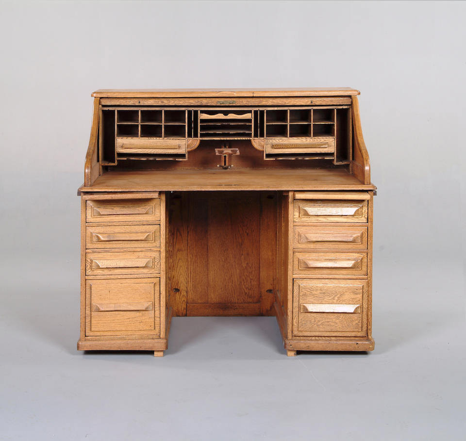 Oak Roll Top Desk Winners Only Brand Double Single File